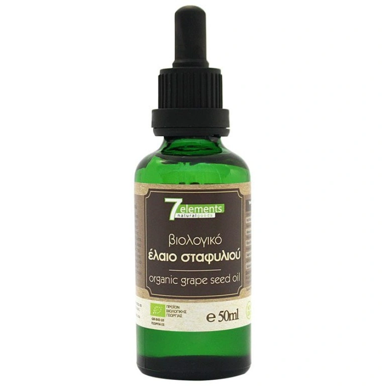 Το βρώσιμο Βιολογικό Έλαιο Σταφυλιού (Vitis Vinifera Seed oil) της 7elements παράγεται από κουκούτσια σταφυλιού με τη μέθοδο της ψυχρής έκθλιψης. Καταναλώνεται ωμό αλλά και στη μαγειρική λόγω του υψηλού σημείου καύσης του.